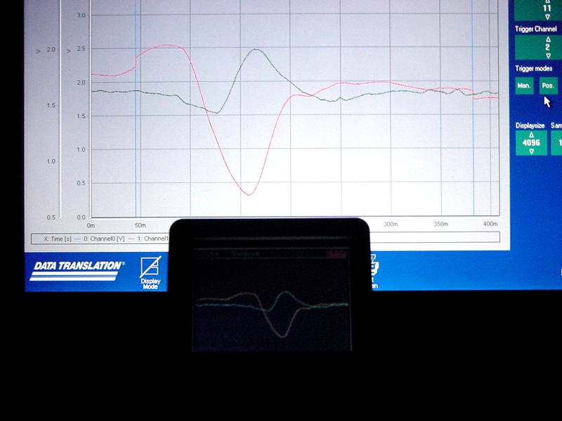 During development, I connected the accelerometers to a data collection system, so I could study the signals on my laptop.