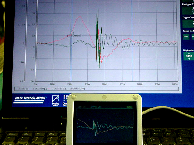 One night, I took the whole setup into the pool hall, and started shooting balls with it. The results were instantly amazing, though it took me a while to figure out what the traces meant. Studying the traces on the laptop was much better than listening to the Stroke-Alert, and I knew that smart pool players would want to have something like this.